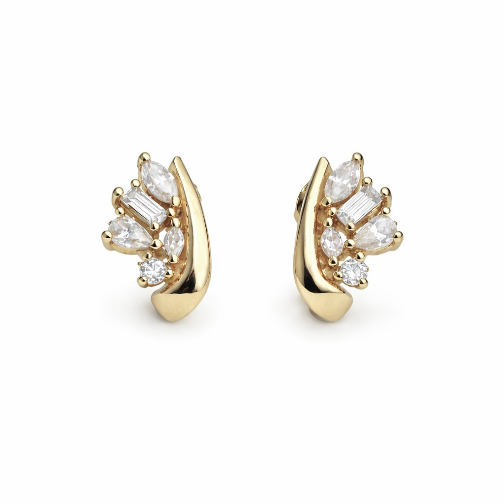 A sculptural earring featuring a refined mix of emerald, pear, marquise and round cuts. Designed to hug the ear with a soft curve, this piece balances modern elegance with timeless sparkle. Lightweight yet eye catching- perfect for both effortless days and elevated evenings.